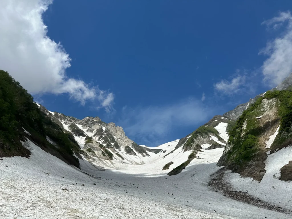 また、落石はどの山でも注意が必要ですが、雪渓の上でも油断は禁物。登山中は周囲の音や上方を意識しながら、安全第一で歩きましょう。